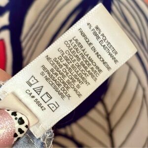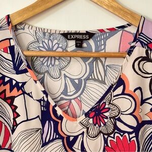 Bold floral blouse from Express with vibrant navy and coral design. Perfect for casual or dressy wear, size large.