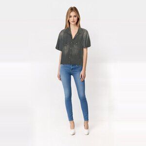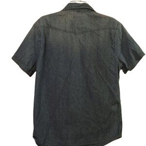 Express Western Denim Womens pearl snap buttons short sleeve shirt Size Large