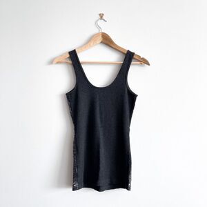 Express Women Sequin Tank Top Sleeveless Stretch Scoop Neck Pullover Black Small