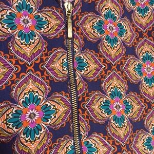 Boho floral blouse, Express zip top, lightweight stretch shirt, mandala print top, colourful casual blouse, v-neck zipper shirt, women’s small Express top, bright boho print shirt.