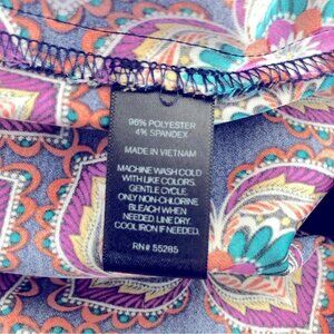Bright, bold, and effortless — this Express short sleeve zip-front blouse delivers the perfect blend of boho flair and everyday comfort. Featuring a vibrant multicolor mandala floral print on a rich purple base, this top is made from a soft, stretchy polyester-spandex blend that drapes beautifully and feels great on.