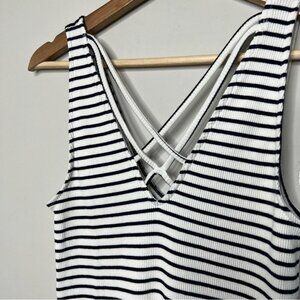 Express Womens Size Medium Blue White Stripe Ribbed Strappy Tank Top Fitted