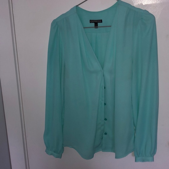 Very pretty Tiffany blue blouse. Full length sleeves, button down. Fits true to size.