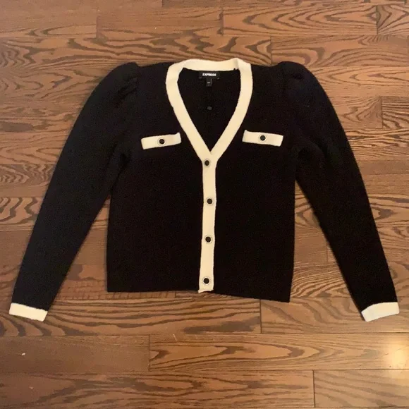 Express cardigan, never worn, has the Chanel look! Warm and cozy! (Black and off white)