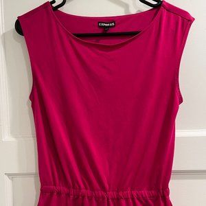Express hot pink sleeveless top with a black ribbon that cinches the waist in the back. Size Extra Small. Soft dressy fabric. Peplum style. In good gently used condition with some pilling. Length is aprox 24 inches.