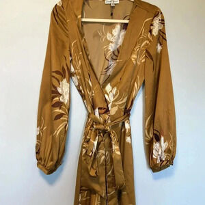 Express x Rocky Barnes gold floral ruffle wrap dress XS/S