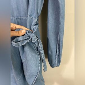 Express Denim Wrap Long Sleeves Dress