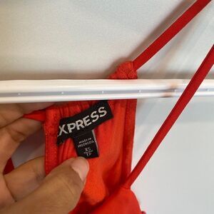 Express Orange Blouse Size XS Back keyhole Front 100% polyester Back 100% Rayon Excellent preowned condition No flaws noted 324-7