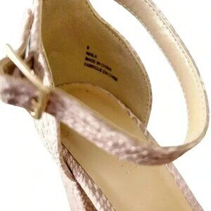 Expression Block Heel Sandals Ankle Straps Pink Cream Snakeskin Size 8