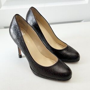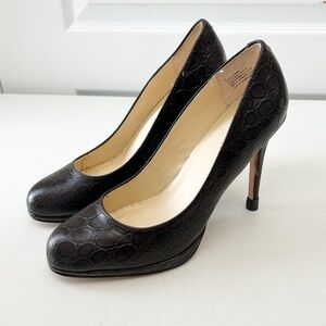 Expression Leather Croc-Embossed High Heels Pumps Dark Chocolate Brown Size 8