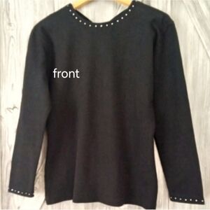 Expression Rhinestone Black Cotton Knit Top M