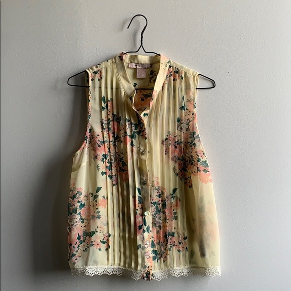 Beautiful blouse from Forever 21. Pleated with decorative buttons and lace trim. Cute over a sweater 🤓