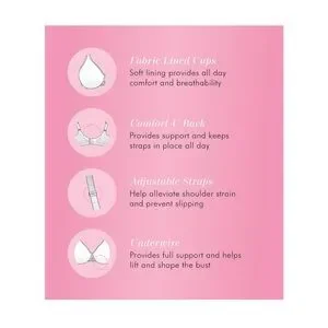 • ULTIMATE COMFORT. This underwire bra not only provides support - it's comfortable enough to wear all day too, with soft cups and a Comfort-U back that helps keep the straps in place.