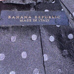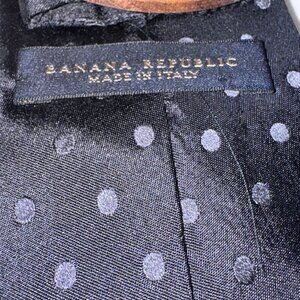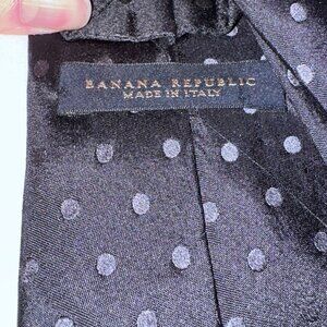 Elevate any outfit with this luxurious 100% silk vintage Banana Republic tie — a true gem that’s getting harder and harder to find! With its elegant black, silver, and blue dotted pattern, this piece delivers timeless sophistication with a subtle pop of style.
