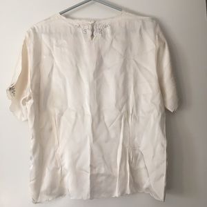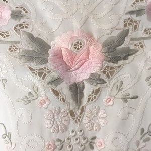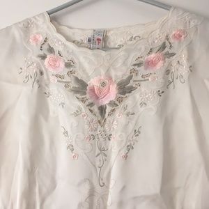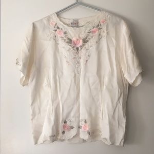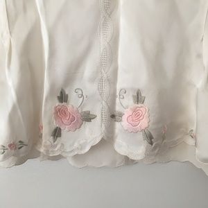 Exquisite Vintage Hand Embroidered Pink Roses Pure Silk Blouse