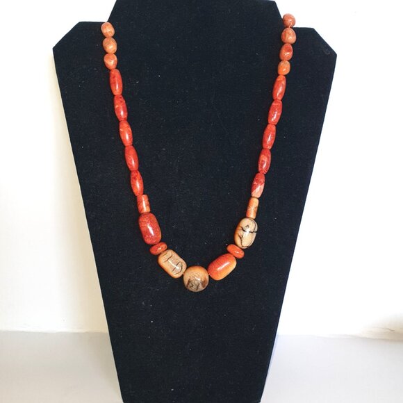 A rare and precious treasure for discerning collectors! This vintage/antique necklace is hand-strung with 36 natural red coral beads, each displaying vibrant shades of deep red to warm orange. Weighing an impressive 67.05 grams (335.25 carats) and measuring 22 inches in length, the strand features substantial beads ranging from 10mm to 20mm. It is a striking statement piece of timeless beauty.