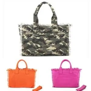 Fringed canvas tote 14”x9”x4”