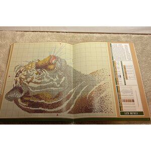 This cross-stitch pattern features a stunning tiger design with intricate detail, making it a distinguished addition to needlework collections.