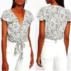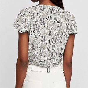 Eye-Catching Snakeskin Flutter Sleeve Tie-Front Blouse by Express XS