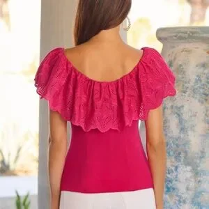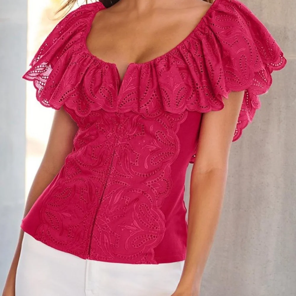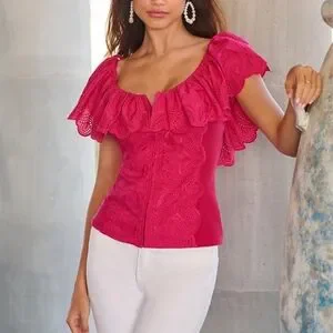 Eyelet Ruffle Zip Up Top