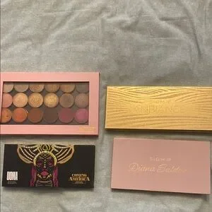 Includes Sigma Ambiance and Diana Saldana, Uoma Coming 2 American Royal Heir-itage, and a Z-Palette with deposed Pat McGrath eyeshadows from her 6 pan cardboard palettes (subliminal platinum bronze, sublime bronze ambition, and rose decadence).