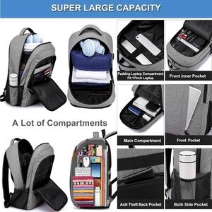 Ezuola Travel Laptop Backpack, Business Work Bag Gray