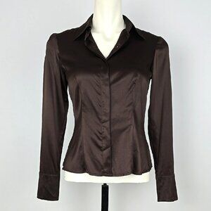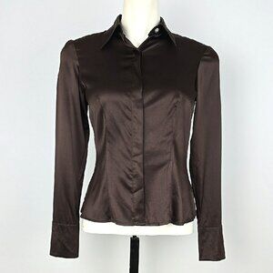 F Carriere Women's Silk Blend Espresso Brown Long Sleeves Button Down Blouse XS