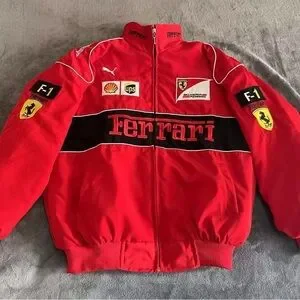 High-quality cotton-padded Ferrari racing jacket with detailed embroidery.