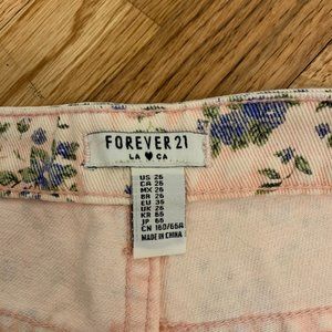 Forever 21 Floral denim pink shorts. Worn twice, excellent condition. They fit small - close to XS.