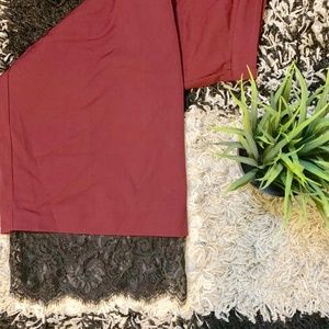 Forever 21 Knee-Length Pencil Skirt with Lace Bottom Detailing - Burgundy Condition: Unused, NWT