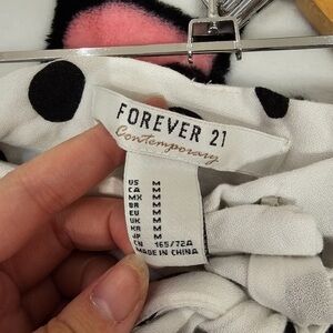 F21 Polka Dot Wide Leg Tie Waist Trouser M Black / White