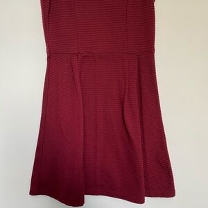 Bordeaux pleated and ribbed dress. Has loops at the waist for a thin belt. In great condition. Size small.