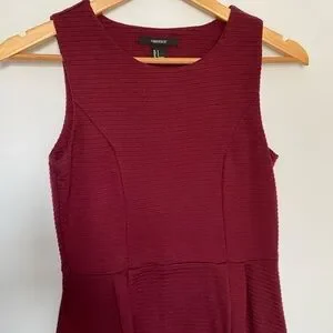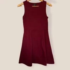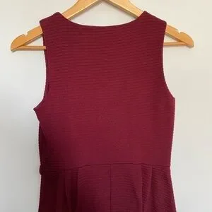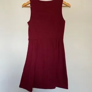 Bordeaux pleated and ribbed dress. Has loops at the waist for a thin belt. In great condition. Size small.