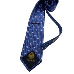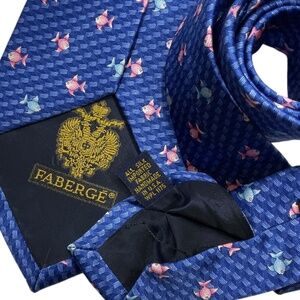 FABERGÉ Blue Geometric Fish Silk LUXURY Tie HANDMADE USA