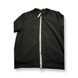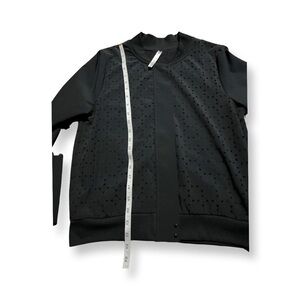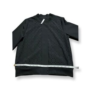 Beautiful and stylish lightweight jacket. The fabric is very light and breathable, making it great for exercising, and it's stylish enough that you can throw it over a tank top or sports bra to quickly convert your outfit into a casual everyday look!