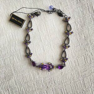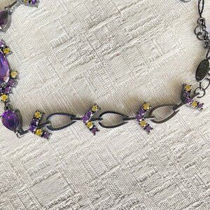 New with tag Fifth Avenue Collection bracelet features regal colours of purple Amethyst gemstones and yellow delicate crystals on rhodium plated gunmetal chain link. The name Roblin on the small dangle charm is likely referring to the designer for FAC who created the piece according to my research.