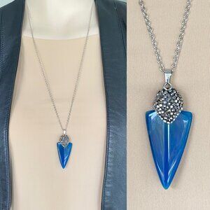New With Tag Canadian Brand Fifth Avenue Arrowhead Natural Polished Blue Agate Gemstone & Marcasite Pendant Necklace. Stunning & vibrant in colour with marcasite pave bail. rhodium plated silver tone 26" chain. Hypoallergenic, Free from nickel, lead & cadmium.