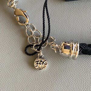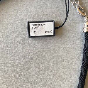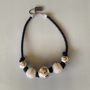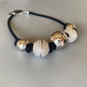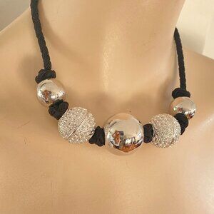 New With tag, Fifth Avenue Collection Striking 16" Bold Choker necklace, polished silver tone spheres with alternating pave crystals spheres on braided & knotted black cord. rhodium plated. Free of Lead, nickel & cadmium.