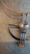 This necklace is very luxurious and geometrical. It has a torque for the neck with a 3“ x 3“ pendant that is very modern and beautiful pendent with a huge Swarovski Crystal with rose rose bezel and an arrow with rose gold as well and rhinestones. The necklace wire is rose gold, and some of the components of the dangle are silver in color.