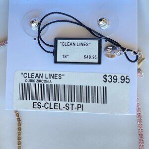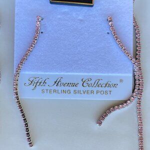 Fifth Avenue Collection Black Cubic Zirconia rhodium plated Silver Tone Necklace & Earrings Set. Simply stunning with pastel pink AAA cubic zirconia delicate 18" tennis necklace with matching 2 .5" Long sleek earrings. Sterling silver earring posts, Hypoallergenic, Nickel, lead & cadmium free, hypoallergenic.