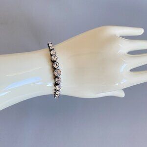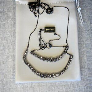 New With Tags Canadian Brand Fifth Avenue Collection, Rhodium plated Gunmetal with graduated Swarovski bezel set crystal necklace & bracelet set. Slider bolo style, graduated design of brilliant clear-cut stones. Adjustable Necklace length: 30" bracelet fits wrist sz 6" to 8.5". hypoallergenic, free from nickel, lead & cadmium.