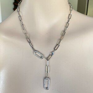 New With Tag Fifth Avenue Collection Adjustable 18" Lariat style Rhodium plated silver tone oval link chain with Swarovski pave clear crystal accent links. Hypoallergenic, free from nickel, lead & cadmium.