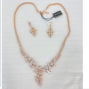 FAC Cubic Zirconia Rose Gold Tone Necklace & Earrings