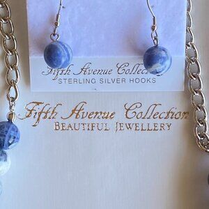 NWT Canadian Brand Fifth Avenue Collection Natural Blue Marbled with White Agate 18" + 1" Necklace & Earrings set with 2 silver tone rhodium plated spacers embedded with Swarovski crystals. Sterling silver earring hooks, earrings Length: 31mm. hypoallergenic, free from lead, nickel & cadmium.