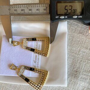 New With Tag Canadian Brand Fifth Avenue Collection, dazzling, sparkling with a modern Architectual design that styles beautifully for both special occasions and for adding flair to an everyday look. Rhodium plated gold tone Open trapezoidal grid like pattern on lower section, sparling clear, gray & black genuine Swarovski crystals along the top. Sterling silver earring posts, hypoallergenic, free from nickel, lead & cadmium.