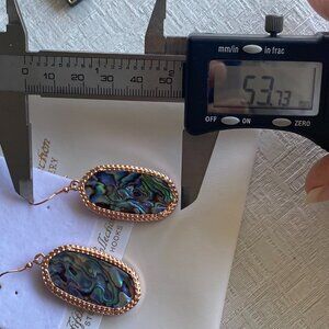NWT Canadian Brand Fifth Avenue Collection Rhodium Plated Rose Gold Tone Genuine Abalone long oval peacock cabochons inside a hammered frame border. 29" necklace chain +1.5" extender chain, necklace pendant: 2" x 1", earrings: from top of hook to bottom: 2" x 3/4". Sterling silver hooks, hypoallergenic, free from nickel, lead & cadmium.