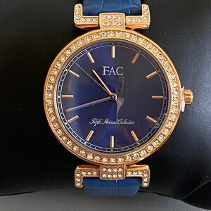 FAC Rose Gold Crystal Blue Leather Strap Watch NWT