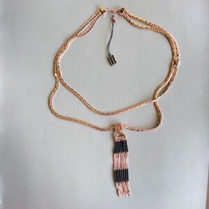 FAC Rose Gold Tone Layered Tassel Sweater Necklace NWT
