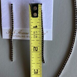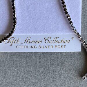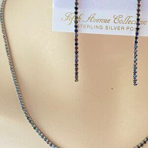 Fifth Avenue Collection Black Cubic Zirconia rhodium plated Silver Tone Necklace & Earrings Set. Simply stunning with midnight black AAA cubic zirconia delicate 18" tennis necklace with matching 2 3/4" Long sleek earrings. Nickel, lead & cadmium free, hypoallergenic.