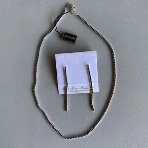 FAC Sleek Black CZ Silver Tone Necklace & Earrings Set NWT